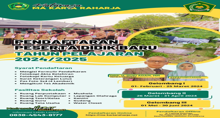 Assalamu'alaikum, Wr.Wb telah dibuka Pendaftaran Penerimaan Siswa Baru Kelas 10 dan Pindahan Siswa kelas 11 dan 12 Tahun Pelajaran 2024/2025. Madrasah Lebih baik, lebih baik bersama m